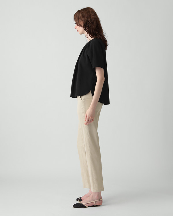 ・ややテーパードがかった、ストレートに近いシルエットのパンツ。
