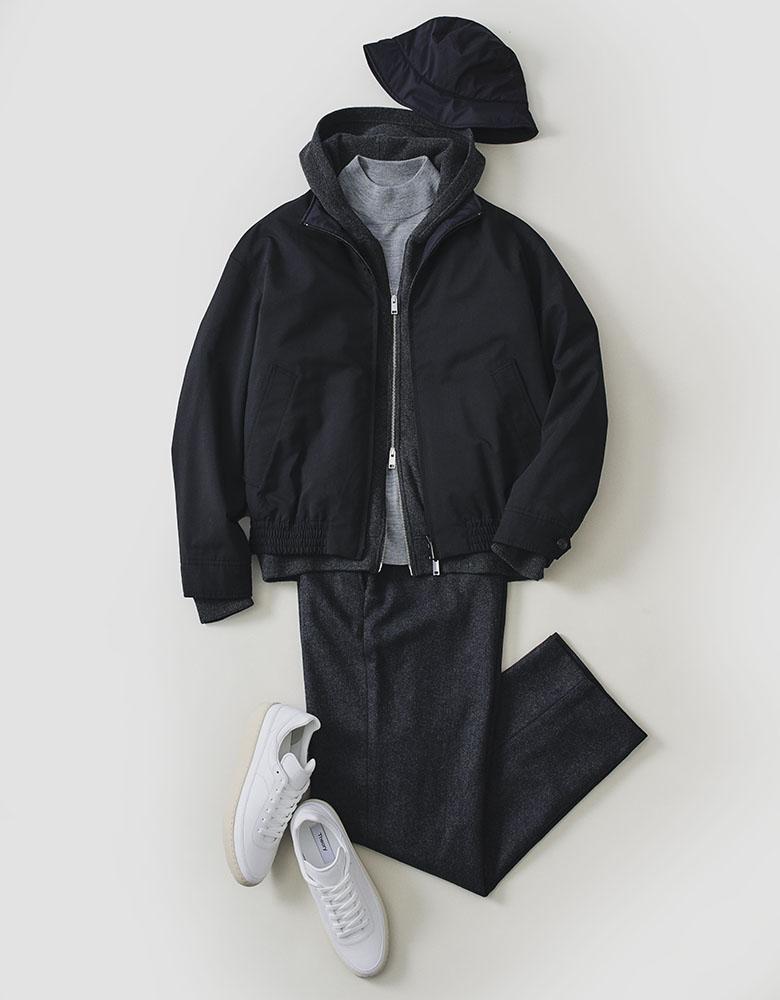 レイヤードで立体感を演出したモノトーン
