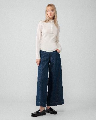 ・ヘンリーネックのプルオーバーセーター。程よいデザインと、ハイゲージニットのきれいめな印象が魅力。一枚着はもちろん、ジャケットやコートのインナーとしても活躍します。