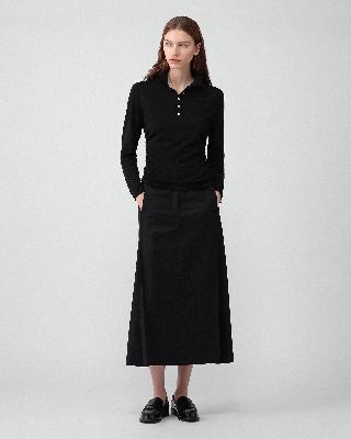 ・ウエストサイドに施したギャザーがスタイルアップ効果を演出。オフィスやきれいめカジュアルにも対応できる万能アイテム。