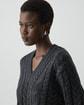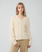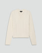 ・ミックスケーブルの編地で仕上げたVネックセーター。