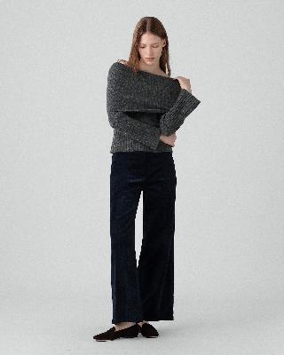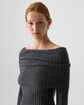 ・ベルスリーブ仕様のオフショルダーニット。