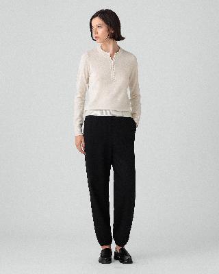 ・前見頃のボタンがアクセントになったカシミヤセーター。