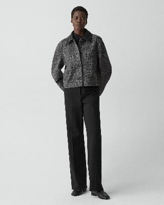 ・センタープレス入りで美脚効果のあるクラシカルなストレートパンツ。