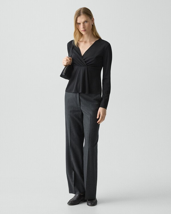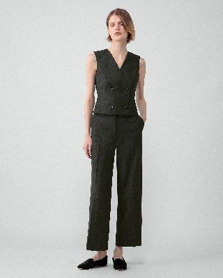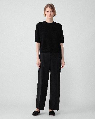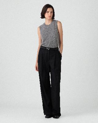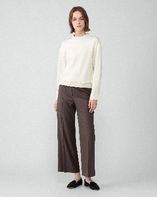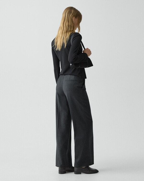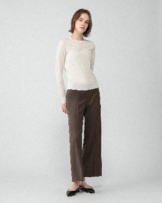 ・ウエスト位置が低く、クリーンなデザインのワイドストレートパンツ。