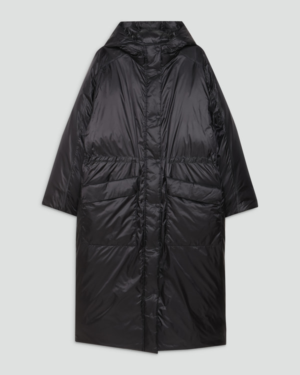 ・丈を長めにデザインしたパッファーコート。
