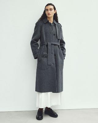 ・ダブルフェイス素材のクラシカルなトレンチコート。