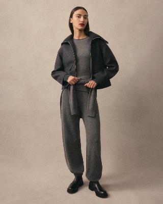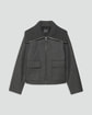 ・大きめなリブ襟がアクセントのショート丈のニットコンボジャケット。