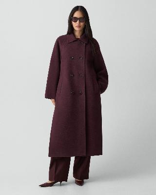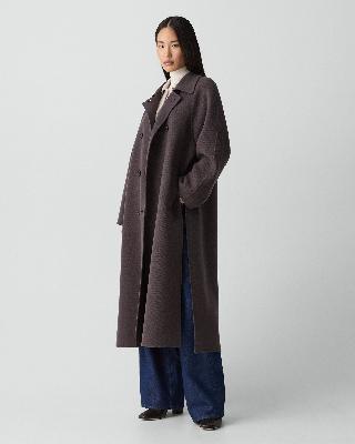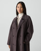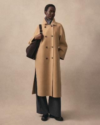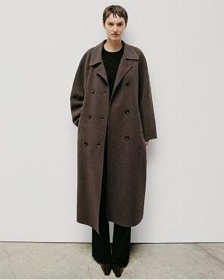 ・両サイドに深めのスリットを施したダブルブレストロングコート。
