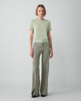 ・上質な素材感がより際立つ、シンプルで飽きのこないデザイン。肩やネックライン、身幅、袖など、緻密に計算された女性の体に沿う美しいシルエット。