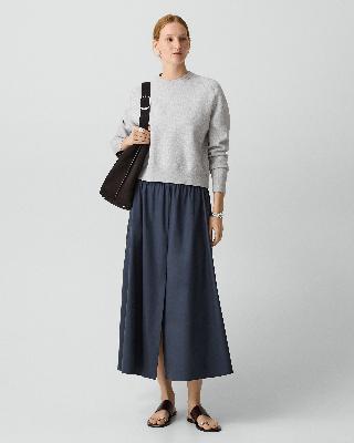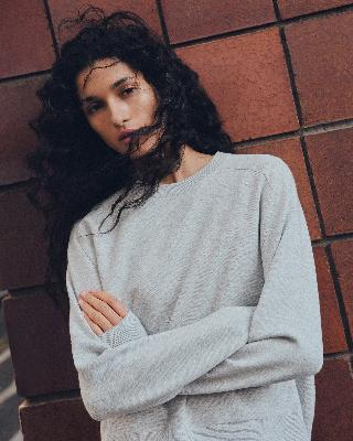 ・イージーなテーパードスリーブ仕様のクルーネックセーター。