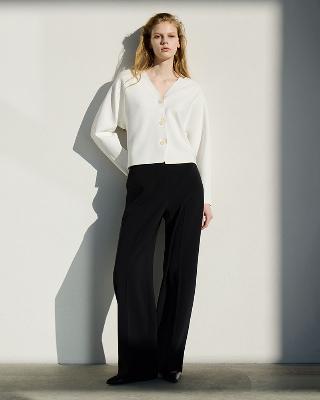 ・センタープレス入りで縦長効果と美脚効果を演出し、脚のラインを拾わないシルエットで体型を問わず美しく着こなせます。オン・オフどちらにも対応し、快適な着心地ときれい見えを両立。