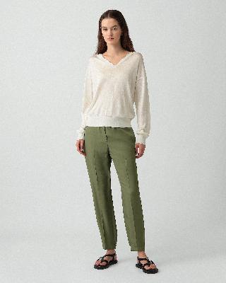 ・自然な落ち感があり、きれいめからカジュアルまで幅広いスタイリングに馴染みます。