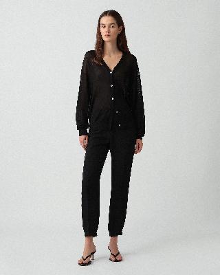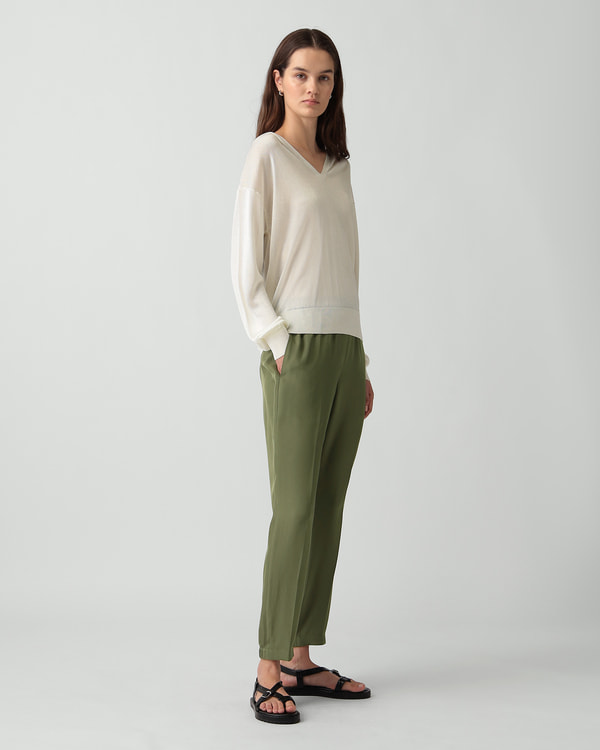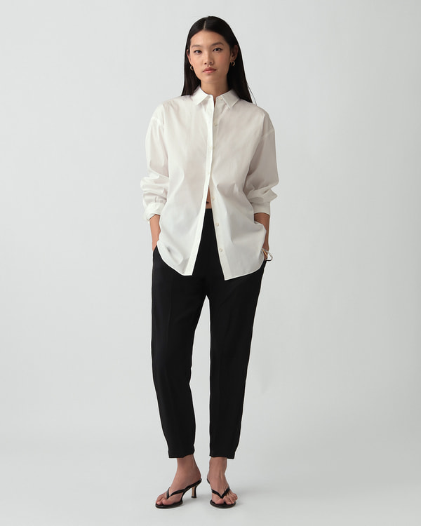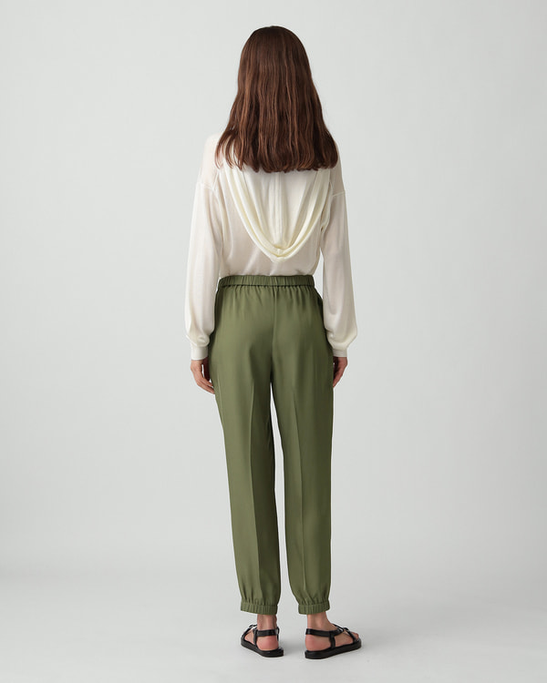 ・裾の後ろ部分のみにゴムを入れたクリーンなジョガーパンツ。
