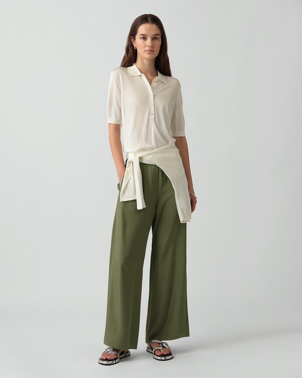 ・美しいドレープが魅力のプルオンパンツ。
