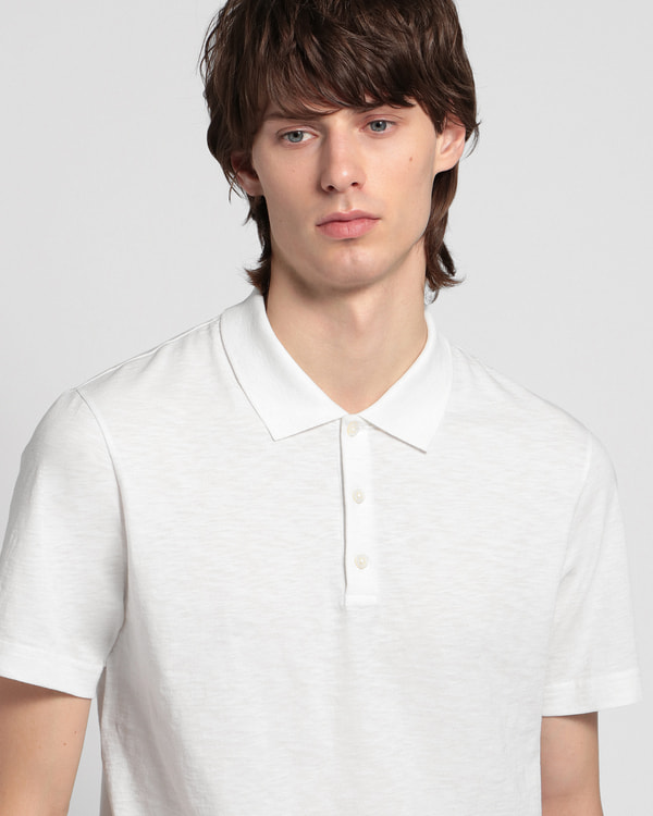 ・メンズ定番のスラブカットソー素材を使用したクリーンなポロシャツ。
