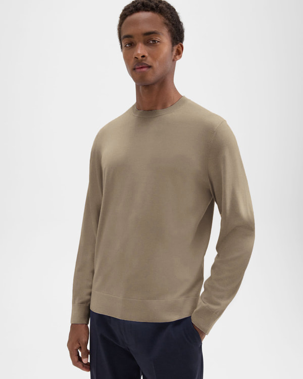 ・素材の美しい目面が際立つクリーンな長袖プルオーバーニット。