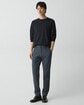 ・細身ながらも快適な着心地のメンズパンツ。サイド部分のみゴム仕様でヒップのたるみを解消し、360度きれいなシルエットを実現。