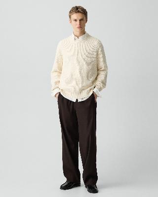 ・奥行きあるスラブ糸が上質さを添えるクルーネックニット。