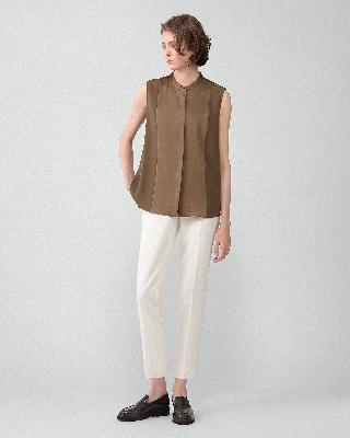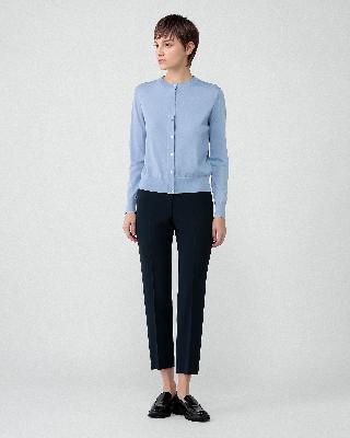 ・センタープレスが入り、レッグラインに沿うように裾にかけて緩やかに絞られた美シルエット。