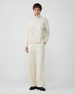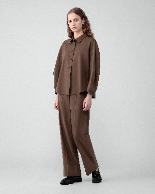 ・すっきりとしたストレートシルエットのパンツ。