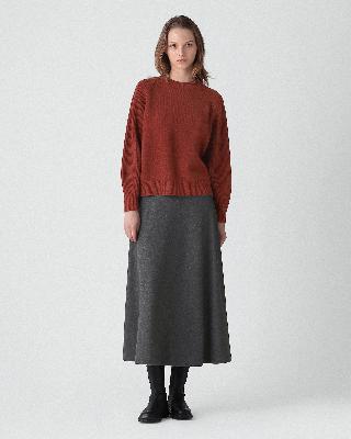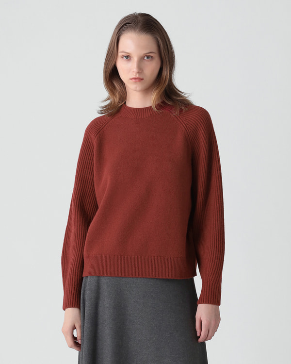 ・シンプルながらも洗練された印象を与えるプルオーバーニット。