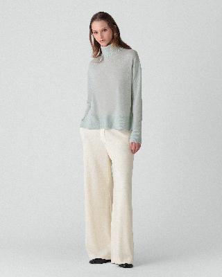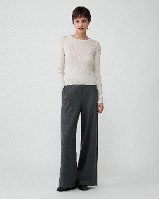 ・大胆なワイドフレアが特徴のイージーパンツ。