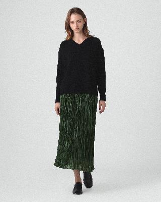 ・エレガントな素材の風合いを活かした立体感のあるスカート。