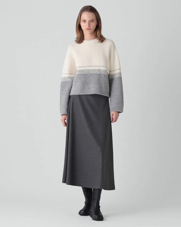 ・ジャージー素材ながら二枚パネル設計でクリーンな印象に仕上げた一着。