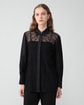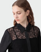 ・前身頃にジャカードレースを配した、エレガントなコンビブラウス。
