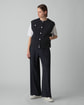 ・ボクシーなシルエットが特徴の、ブルゾンライクなベスト。