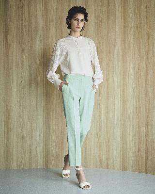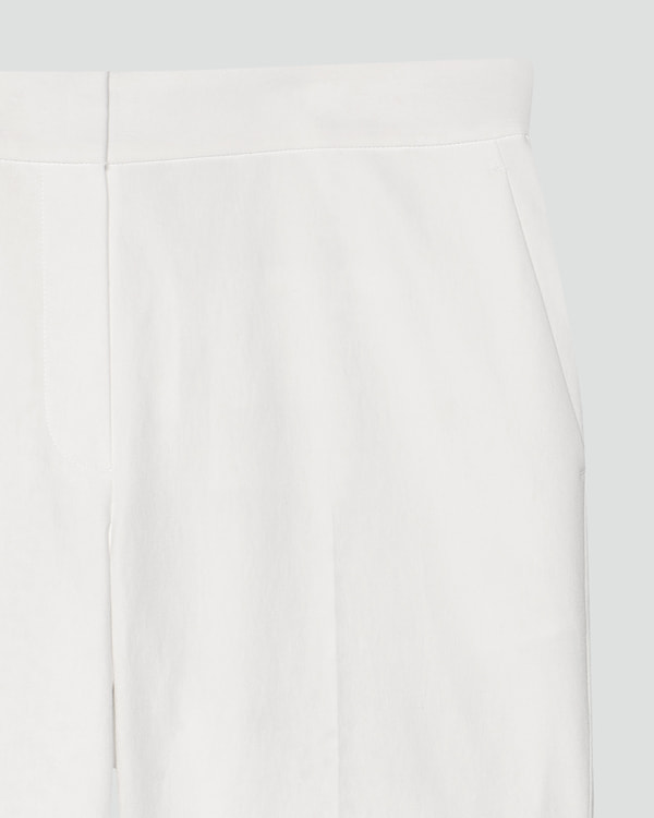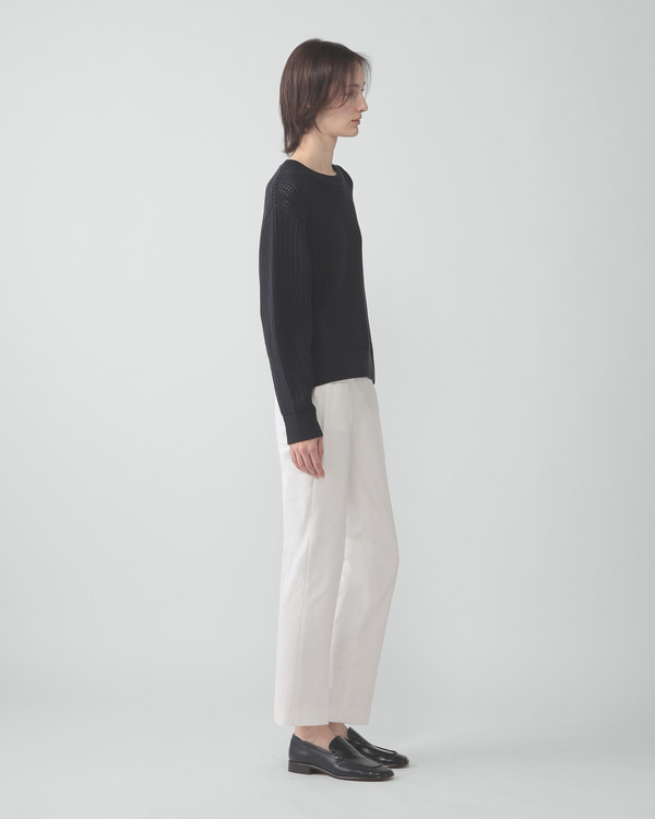 ・センタープレスを施したクロップド丈がすっきりとした印象に。