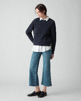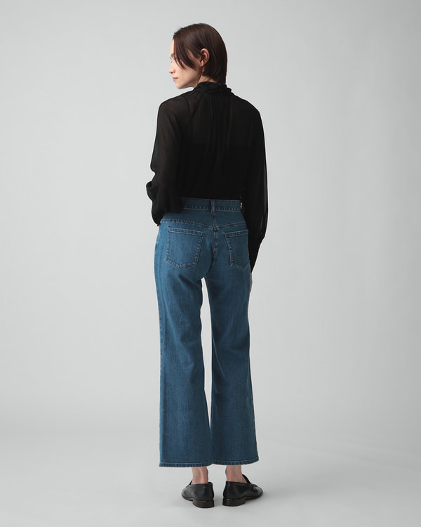 ・濃色で芯白が際立つデニムを使用し、インディゴの陰影が美しく映える素材。