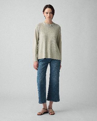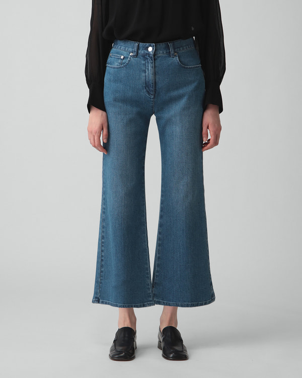 ・ややフレアに広がる、美しいシルエットが特徴のパンツ。