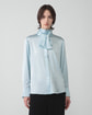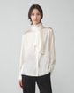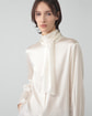 ・幅広のタイがアクセントになったエレガントなブラウス。