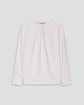 ・ネックラインにタックを入れ、共布パイピングで仕上げたデザイン。