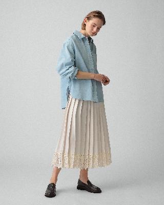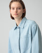 ・クリーンな比翼仕立てのデニムシャツ。