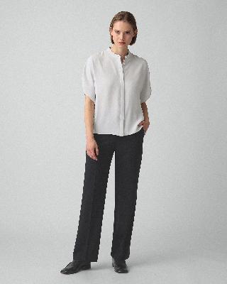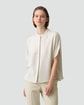・袖のラインが印象的な、モダンなシルエットのブラウス。