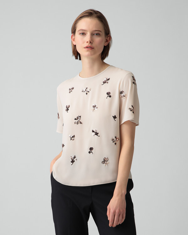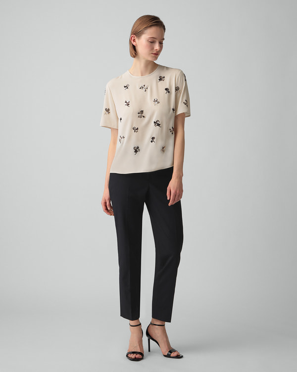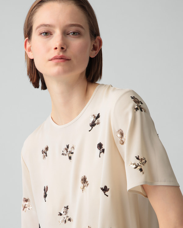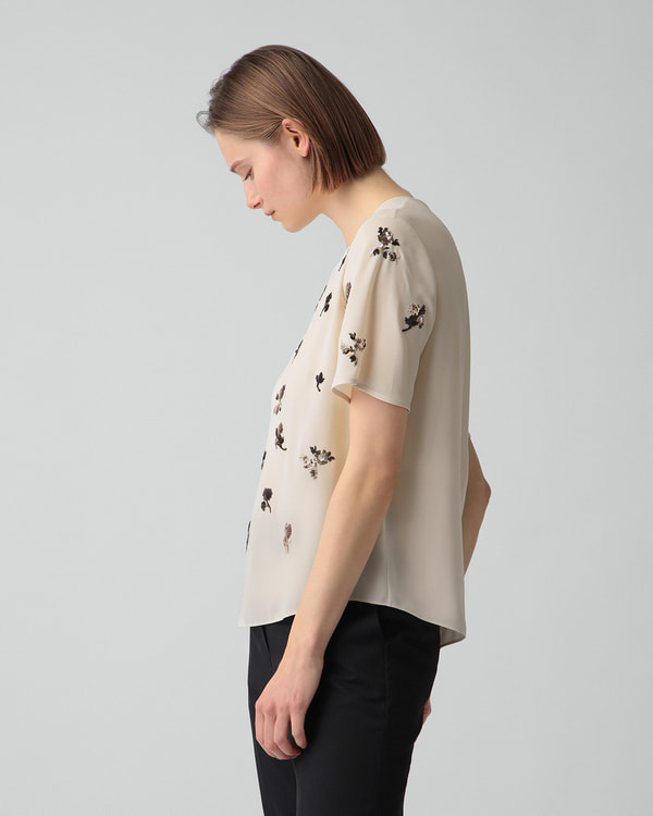 ・動くたびに繊細に輝く、華やかさのある半袖ブラウス。