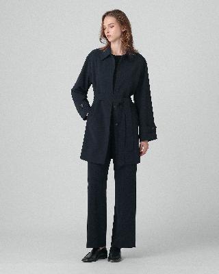 ・ボクシーなストレートシルエットのミドル丈コート。