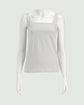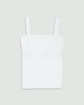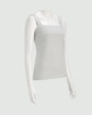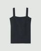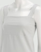 ・ストレートラインの胸元がシャープな印象を与えるプルオーバータンクトップ。胸元の開きは広すぎず、直線的なラインがすっきりとした表情を演出します。