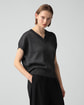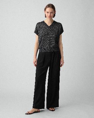 ・ナチュラルな光沢感とメランジカラーが上質な印象のVネックセーター。