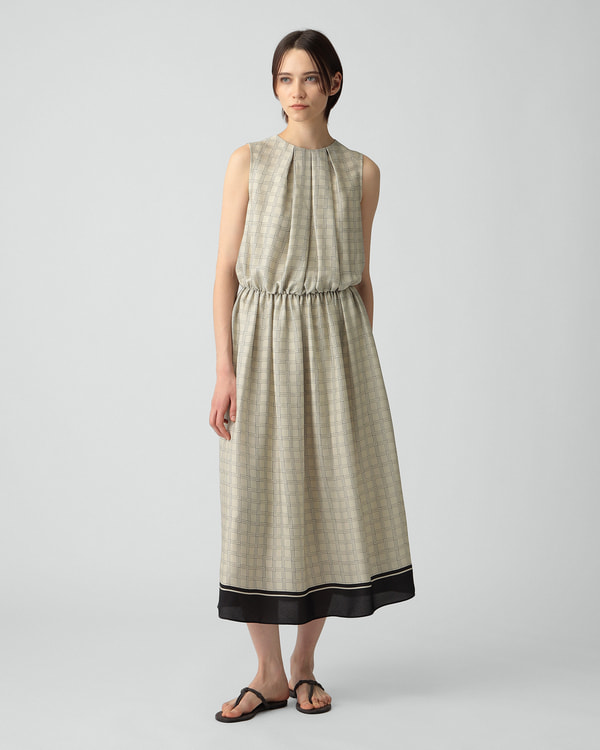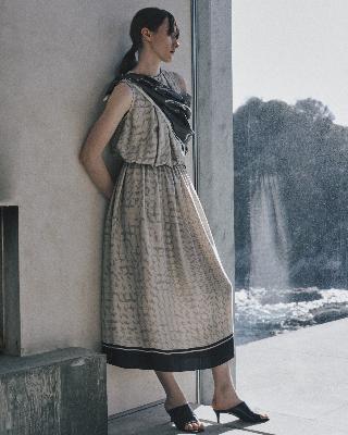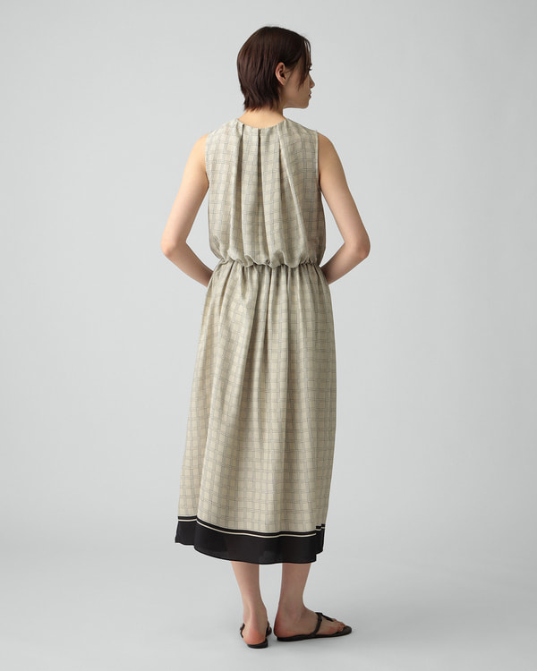 ・ウエストにエラスティックを配したプリント柄のドレス。