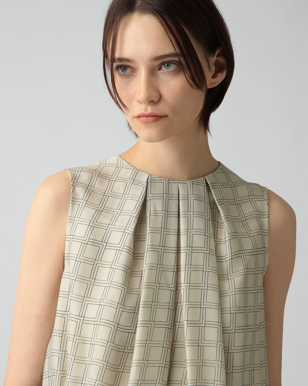 ・印象的な幾何学柄をシンプルなデザインに落とし込んだ一着。