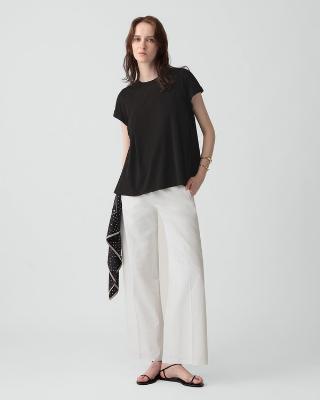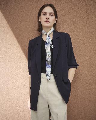・イタリア名門の素材メーカーと共同開発したストレッチリネン素材で、接触冷感性もあり、伸縮性のある快適な着心地と高い耐久性を兼ね備えたセオリーリュクスオリジナル素材です。