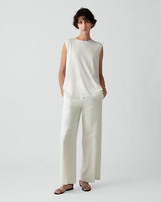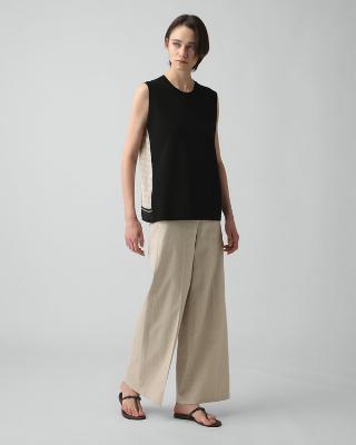 ・リネンならではの清涼感とナチュラルな艶感に加え、上品に揺れるドレープ性があり、きれいめスタイルにも自然に馴染みます。