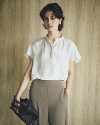 ・すっきりとした裾周りと素材の落ち感で美しいラインを演出。