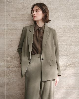 ・シャツ襟で甘さを抑えた、使いやすいデザイン。