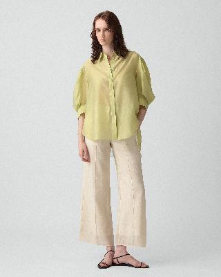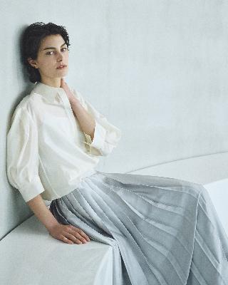 ・袖にタックを施した、トレンド感のあるシルエットのシャツ。
