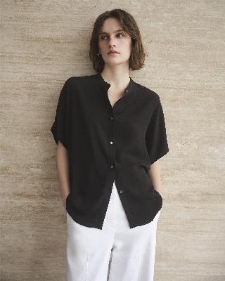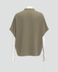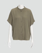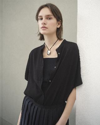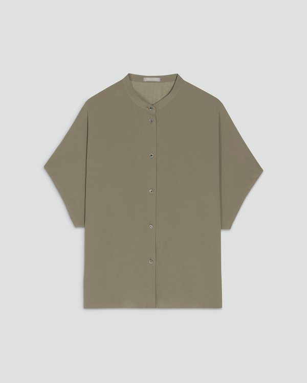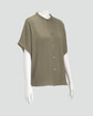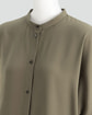 ・バンドカラーとドルマンスリーブが特徴の前開きブラウス。